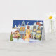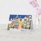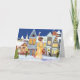 Tarjeta de Navidad vintage afroamericana con mujer caminando por una calle de la ciudad comprando