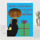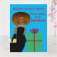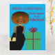 Esta tarjeta de Navidad muestra a una mujer afroamericana con un afro cargando un libro de bolsillo. Obtén esta tarjeta de Navidad para un miembro de la familia, un ser querido o un amigo a tiempo para Navidades.