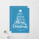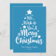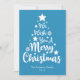 Le deseamos una Feliz Navidad con un tipo de letra estilo script en una tarjeta de Navidades azul en forma de árbol. Puede cambiar el color del fondo y también del gráfico principal, así como el nombre de la familia, el texto del año.