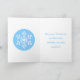 El frente tiene un copo de nieve blanco sobre un fondo azul hielo con "Feliz Navidad" de la familia que lo rodea. El interior tiene una repetición del copo de nieve y un mensaje en azul coincidente.