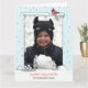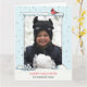 Un ilustracion de estilo personalizado pone tu foto de vacaciones en una divertida escena nevada. La foto perfecta de tus Navidades, llena de nieve, es visitada por un cardenal rojo Ave y los restos de una pelea de bolas de nieve sentados en la base. Personaliza el Saludo y el apellido (¡o lo alteras para que te adaptes a tu humor!) y esta es la tarjeta perfecta para Navidades de personalizable para una familia con un sentido de diversión... Este marco festivo realmente se adapta a una foto graciosa para una tarjeta de Navidades lúdica - foto y texto, incluido el saludo, se pueden personalizar. La parte trasera se ha dejado en blanco para su propio mensaje manuscrito. Desde un original dibujo animado y expresivo de tinta con las marcas, salpicaduras y manchas de acuarela de mi estilo distintivo, esto le da a la obra un aire fresco e inmediato.
