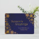 Elegante Navidades de estilo plano tarjeta de felicitación hecha en un fondo gris azul oscuro, con ricos copos de nieve dorados, en los lados izquierdo y derecho de la tarjeta. El texto gráfico de tono dorado dice Saludos de temporada. Personalice el texto amarillo dorado, en la parte inferior de la tarjeta, para adaptarlo a las necesidades de su empresa.