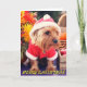 Cute Yorkshire o tarjeta de felicitaciones al personalizable de fotos Silky Terrier. En el texto frontal se lee "Feliz Navidad", en el interior del texto se lee "¡Feliz Navidad y Feliz Año Nuevo!" El texto se puede personalizar.