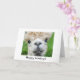 Tarjeta doblada con una linda foto de una alpaca en la parte delantera con el texto 'Felices fiestas'. En el interior del texto "de nuestro rebaño a tu..." De "tu nombre". Personalizar con su texto.