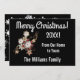 Navidades muy elegantes con ángeles, joyas y flores esparcen sobre el fondo negro clásico. La imagen de Jewel se muestra muy dramáticamente en el fondo oscuro. Los colores y el tipo de letra dan un toque de diseño moderno a una carta de elegancia clásica. El tipo de letra blanco limpio realmente "aparece" en el fondo. Toda la información puede ser personalizada a su gusto. La parte posterior de la tarjeta tiene un fondo negro con un hermoso patrón de copos de nieve para coincidir con el diseño en la parte delantera de la tarjeta.