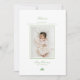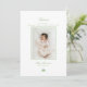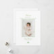 Celebra la llegada de tu recién nacido en temporada de vacaciones con este anuncio de nacimiento minimalista y tarjeta de Navidad en uno. Diseñada con un fondo blanco limpio, la tarjeta incluye la foto de su bebé enmarcada en verde pastel suave, caligrafía elegante para una cálida bienvenida y Feliz Navidad, y un sencillo árbol de Navidad de tres tonos para un toque festivo. Un recuerdo perfecto para los bebés nacidos a finales de noviembre o diciembre. neutra en cuanto al género y elegante para las familias modernas.
