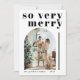 Esta tarjeta de navidades presenta un audaz tipo de letra contemporánea con las palabras "muy alegre" y una franja fotográfica abovedada para la foto de tu familia. Edite todos los colores y frases para satisfacer sus necesidades. Esta tarjeta de vacaciones es perfecta para la familia boho minimalista.