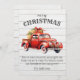 Vieja tarjeta rústica de Navidades de coches rojos de madera.