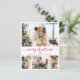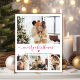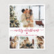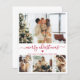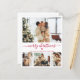Elegante Presupuestario Estilo Corazón Rojo Moderno Guión 4 Collages de fotos Feliz Navidad Script Tarjeta Delgada. Nota: más delgada que la postal! Esta festividad mínima de cuatro (4) plantillas de tarjetas de vacaciones fotográficas presenta un collage de fotos de bonito, un pequeño corazón de doodle y dice ¡Feliz Navidad! El texto de bienvenida de "Feliz Navidad" está escrito en una hermosa tipografía con letras a mano con tipografía de cola de batida en rojo y blanco. En el reverso se muestra una plantilla de texto de saludo, un pequeño motivo de corazón de doodle negro y pinos sobre fondo blanco. Bonito lindo y económico tarjeta de felicitación delgada es una gran elección para su familia y amigos en esta temporada de Navidades y vacaciones.