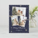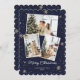 Tarjeta de Navidades fotográficos azules con copos de nieve y estrellas en un fondo nevado azul oscuro. Personaliza fácilmente esta tarjeta de vacaciones moderna con tus fotos favoritas.