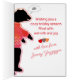 Graciosa tarjeta de Navidades animales que muestra a un oso usando un suéter hecho a mano - le gusta, o tal vez no, es un oso. Tarjeta de corte para proyectos de punto de punto o artesanía de crochet.