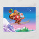 Tarjeta colorida - arte caprichoso de esquiar Santa con bolso lleno de juguetes