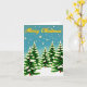 Aquí hay una carta de Navidades simple, de estilo retro, con una bonita escena de árboles y nevadas en invierno.
