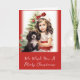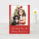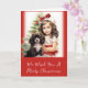 Una niña tan dulce sosteniendo su cachorro esnilado cerca del árbol de Navidad. Ella está adorablemente vestida de blanco festivo con hermosos arcos rojos y pestañas. No tienes que amar a los perros para que les guste esta carta, ¡pero puedes! El concepto se originó en un diseño de acuarela vintage. "Te deseamos una Feliz Navidad" es el sentimiento clásico. Por favor, tenga en cuenta que la imagen en la parte delantera de esta tarjeta doblada y la redonda enmarcada en el interior son reemplazables o ambas con su propia fotografía, si así lo desea. Además, todo el texto, que está en blanco en el frente (en un fondo rojo) y un gran color rojo en el interior, se puede editar con su propia redacción. Asegúrese de cambiar los nombres de ejemplo y la fecha.