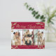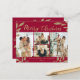 Presupuesto, Elegante, moderno oro y botánicas borgoñas 4 Collages de fotos Feliz Navidad (delgada!) Tarjeta. Esta plantilla festiva, mimánica, caprichosa de cuatro (4) fotos de tarjetas de vacaciones presenta un collage de fotos de la cuadrícula de bonito, hojas botánicas de Relieve metalizado de oro falsas, bayas de invierno y dice ¡Feliz Navidad! El texto de saludo "Feliz Navidad" está escrito en un hermoso tipo de letra tipográfica con letras a mano sobre el fondo de color burdeos, a bordo o rojo del vino. Al revés, una foto horizontal con marco dorado y hojas de Relieve metalizado purpurina de oro falsas en burdeos. Baratas, tarjetas de vacaciones de bonito para tu familia y amigos en esta temporada de Navidades y feriados.