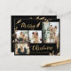 Presupuesto, Elegante, moderno Oro y hojas botánicas negras 4 Collages de fotos Feliz Navidad Festividad personalizada a bajo precio tarjeta THIN. ***POR FAVOR, TEN EN CUENTA QUE! *** PAPEL PRESUPUESTARIO/VOLADOR DELGADO. *** ACTUALIZAR EL DOCUMENTO PARA UN PAPEL MÁS ESPESO. *** Esta plantilla de cuatro (4) plantillas de tarjetas de festividad para festividades, mimálica y caprichosa presenta un collage de fotos de bonito, hojas botánicas de Relieve metalizado de oro falsas, bayas de invierno y dice ¡Feliz Navidad! El texto de bienvenida de "Feliz Navidad" está escrito en un hermoso tipo de letra tipográfica con letras a mano sobre fondo de color negro. Al revés, una foto horizontal con marco dorado y hojas de Relieve metalizado purpurina de oro falsas sobre negro. Bonito por tu familia y amigos en esta temporada de Navidades y feriados. Tarjetas de vacaciones baratas.