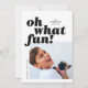 Esta tarjeta de vacaciones presenta un audaz mensaje "oh qué divertido" y colores modernos para una visión actualizada de la tarjeta tradicional de vacaciones. Añade un mensaje más largo y una foto adicional a la parte posterior si quieres.