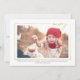 Esta tarjeta de vacaciones presenta el texto Merry en una letra manuscrita en oro falso y un marco. La parte posterior presenta un patrón diagonal de oro con una segunda foto opcional