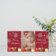 Navidades brillantes rojos con nieve cayendo. El dorado brillante, las bolas y los adornos rojos y blancos bordean la parte inferior de la tarjeta. Cambiar el texto y la fuente a la que se ajuste. Añade tu foto favorita. Añade tu foto, texto Personalizar y letra.