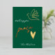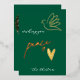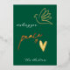Esta mínima paloma y corazón simple - tarjeta de Navidades de paz y amor hace un mensaje positivo y esperanzador para los Navidades. El fondo verde profundo y dorado con el Relieve metalizado dorado hace que la carta parezca rica y elegante. Hay espacio para incluir tu foto en forma de corazón con tus nombres en la parte de atrás.