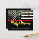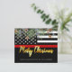 Envía saludos navideños de Feliz a amigos, familia, compañeros de departamentos de bomberos y tu comunidad con esta tarjeta navideña especial del bombero de la línea roja delgada - bandera estadounidense con colores de bandera de bombero, negro y rojo moderno con hojas y bayas huecas y un elegante guión de oro. Personalice su mensaje y su nombre de familia o departamento de bomberos . Estas tarjetas de Navidad para bomberos son perfectas para familias de bomberos y departamentos de bomberos. DERECHOS RESERVADOS © 2020 Judy Burrows, Black Dog Art - Todos los derechos reservados. Tarjeta de Navidades de la bandera del bombero del presupuesto