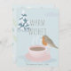 Esta tierna tarjeta de navidades "cálidos deseos" incluye una taza de café rosa llena de café y un ladrón sobre fondo azul claro con un árbol cubierto de nieve. El reverso presenta un fondo floral azul claro de vacaciones con poinsettias en blanco y hueco. Personalízalo para tus necesidades.