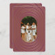 Un hermoso diseño de tarjetas de Navidades familiares que se puede personalizar con tu texto y foto familiar. Los acentos dorados de Navidad tienen marcos ovalados y color de fondo rosa malva profundo.