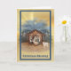 El frente de esta hermosa tarjeta de Navidades tiene una maravillosa imagen de arte vintage de la escena de la natividad bíblica. La imagen, que contiene a María, José y el Niño Jesús, junto con un burro y una oveja, se coloca sobre un fondo de gradiente dorado infusado por la luz, y está bordeada de azul con una delgada línea dorada. La estrella dorada de Belén brilla directamente sobre el establo. El interior de la tarjeta tiene el fondo dorado a la izquierda, con el mensaje de escritura de anuncio de Luke 1. El otro lado es blanco, y parcialmente en blanco para su propio mensaje, con campos de texto personalizado para su firma en la parte inferior. Todo el texto se puede personalizar fácilmente, así que si quieres cambiar a una Escritura diferente, puedes hacerlo fácilmente.