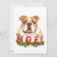 Diseño de tarjetas de vacaciones festivas para los amantes del perro con retrato de bulldog acuarela con letras Noel y garland añadidas