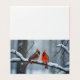 Un bosque sereno y nevado donde un cardenal rojo macho y una hembra no tan brillante perca cardenal sobre ramas de árbol escarchado. Caen copos de nieve suaves, creando un momento de invierno mágico y tranquilo
