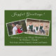 Navidades de personalizable El diseño de la tarjeta presenta dos de sus fotos en un fondo siempre verde. Las fotos están delineadas con un borde blanco. Su mensaje personal aparece justo debajo de la foto, junto con un espacio para los nombres de los familiares.