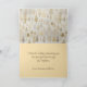 Un maravilloso país invernal de árboles de oro y plata de Navidad desfilan sobre un fondo blanco roto en esta pintura de color de agua vintage. Los espumosos copos de nieve dorados caen sobre la encantadora agrupación de pinos vacacionales. El texto editable incluye "Feliz Navidad" en la parte delantera y saludos adicionales dentro de la tarjeta doblada. Asegúrese de editar el ejemplo "de" nombres y año. En el interior de esta tarjeta de vacaciones hay un patrón de pinos a juego.