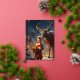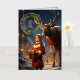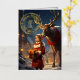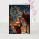 ¿Busca una tarjeta personalizada para enviar con el regalo de sus Navidades? Nuestra tarjeta plegable Reindeer Special Delivery le permite personalizar el frente con su nombre y el mensaje interior. Cuenta con un joven chica vestido de rojo que entrega un regalo a los Navidades con la ayuda de un amigo reno. Se paran en la nieve en un pueblo iluminado por la noche mientras los residentes caminan por las calles. El sello de la parte delantera está hecho con Relieve metalizado dorado para ese toque especial.