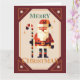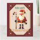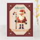 Un ilustracion geométrico y colorido de Santa Claus con un bastón de caramelo y un texto de 'Feliz Navidad'. Perfecto para tarjetas de felicitación de vacaciones o proyectos de diseño festivo que celebran la alegría de los Navidades.