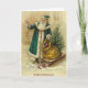 Tarjeta de saludo de Navidades Vintage/Victorianos. ¡Agradable Santa verde esmeralda con entrega de juguetes! ¡Una Feliz Navidad!