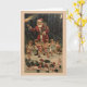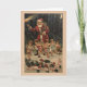 Tarjeta de saludo de Navidades Vintage/Victorianos. Pequeños ángeles adorables que conducen a Santa por el bosque. Feliz Navidad!