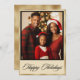 Personalizar esta tarjeta de Navidades con tu foto favorita personal. Falso marco dorado y guión de "Felices Fiestas" en el frente. En blanco en la parte trasera para añadir tu propio saludo y nombre personal. El oro falso hace que esta tarjeta de vacaciones sea tan elegante. Perfecto para las vacaciones.