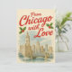 Envía acogedoras vibraciones de vacaciones con esta tarjeta de Navidades de Vintage Chicago que presenta una escena de ciudad nevada y el más sincero mensaje "De Chicago con amor". Resaltando el hermoso paisaje de Chicago y los festivos acentos rojos y verdes, esta encantadora tarjeta es ideal para cualquiera que quiera compartir la magia de la Ciudad del Viento durante la más maravillosa época del año.