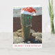 Una fotografía inusual de una planta de cactus decorada para Navidades y el mensaje "Feliz Navidad" impreso en la parte delantera de una tarjeta de Navidades dejada en blanco dentro para tu propio mensaje personal.
