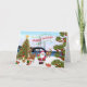 Tarjeta de Navidades del puente Mackinac con animales Woodland incluyendo reno, zorro, Santa, cardenal rojo y árbol de Navidad.