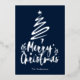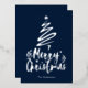 Relieve metalizado plateado de fondo azul oscuro Feliz Navidad estilo de escritura decorativa con un contorno de un árbol de Navidad y una estrella encima. Esta tarjeta de Navidad está diseñada para que puedas cambiar el color del fondo e introducir también el nombre de tu familia.