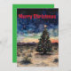 Una tarjeta de Navidades de dos lados con un hermoso árbol de Navidad en el desierto. El frente dice: Feliz Navidad. La parte de atrás dice: ¡Desde el sudoeste estadounidense!
