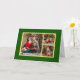 Personaliza esta tarjeta de Navidades con tu propia foto rodeada de evergreens y marcos dorados. Escribe tus deseos de Navidades.