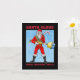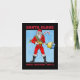 Feliz Navidad de Santa antes de salir a entregar regalos con la ayuda de su nuevo equipo que puede disparar los regalos a los niños. Coloque su propia foto dentro de la tarjeta de Navidades.