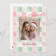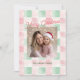 Este Navidad retro con color de agua es especial gracias a su bonita gingham rosa y verde claro o a su borde marcado. Con un delicado colorido para la temporada especial de invierno, hace un bonito marco pastel alrededor de tu foto para esta bonita tarjeta de vacaciones. En la parte posterior de esta tarjeta plana hay un ejemplo de saludo, pero se puede cambiar todo el texto. Asegúrese de editar los nombres familiares y personales que aparecen en la parte delantera y trasera de la tarjeta, y también la fecha.