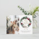 Esta tarjeta de Navidades cuenta con una ranura para fotografía, una elegante fuente caligráfica dorada con una corona borgoña y una flor de pino. Edite *most* frases para que coincidan con sus necesidades y edite los colores de fondo a su gusto.