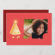Una adorable cuña de queso suizo árbol de Navidad que luce una gran sonrisa de queso acompañada de una gran foto de sonrisas de queso.