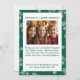 ¡Traigan los días de nieve! Difundir alegría por las vacaciones con esta carta clásica de Navidades que tiene un toque moderno. Con un fondo verde festivo con diseños de copos de nieve blancos, y un marco de arco para resaltar tu imagen de retrato en la parte delantera, y una foto adicional en la parte posterior enmarcada por un patrón de copos de nieve. Hay mucho espacio en la parte posterior para escribir tu mensaje a tu familia y amigos, o firmar tus nombres en la tarjeta para un toque personal. Elija entre varios tipos de papel y formas para adaptarse a su estilo, luego cargue sus imágenes y edite el texto para crear una tarjeta de vacaciones única que valorarán!