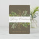 Envíe sus cálidos deseos esta temporada con nuestra hermosa tarjeta de Navidades rusticos modernos. El frente cuenta con un sofisticado y sereno fondo acentuado por la vegetación acuática y hojas y elegante guión de "Feliz Navidad". El reverso es una tarjeta de festividad fotográfica completa que muestra la imagen de tu familia enclavada en un delicado diseño de flores de eucalipto. Esta tarjeta de dos caras ofrece un amplio espacio para un mensaje de vacaciones personalizado. Perfecto para quien busca un tema natural, bohemio o rústico de vacaciones y una tarjeta de foto personalizado única para enviar por correo a su familia y amigos.