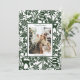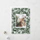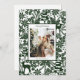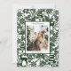 La escena de un bosque en invierno es el tema de esta carta de Navidades. El diseño presenta vegetación forestal como pinares, árboles cubiertos de nieve, flores y ciervos. La foto de tus Navidades se sentará en el centro de la tarjeta rodeada por el diseño verde y blanco.
